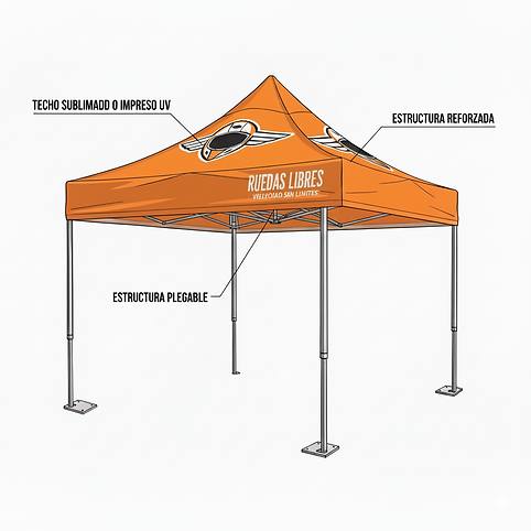 Lleva tu marca a donde está la gente. Nuestras carpas publicitarias plegables son rápidas de armar, resistentes y 100% personalizables en techo y paredes. Perfectas para ferias, activaciones, mercados, eventos deportivos y puntos de venta temporales.